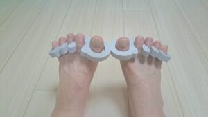 次にのけ反った姿勢で足の指を使えていなかったので足の指をストレッチしてもらい、足指君を使って頂きました。